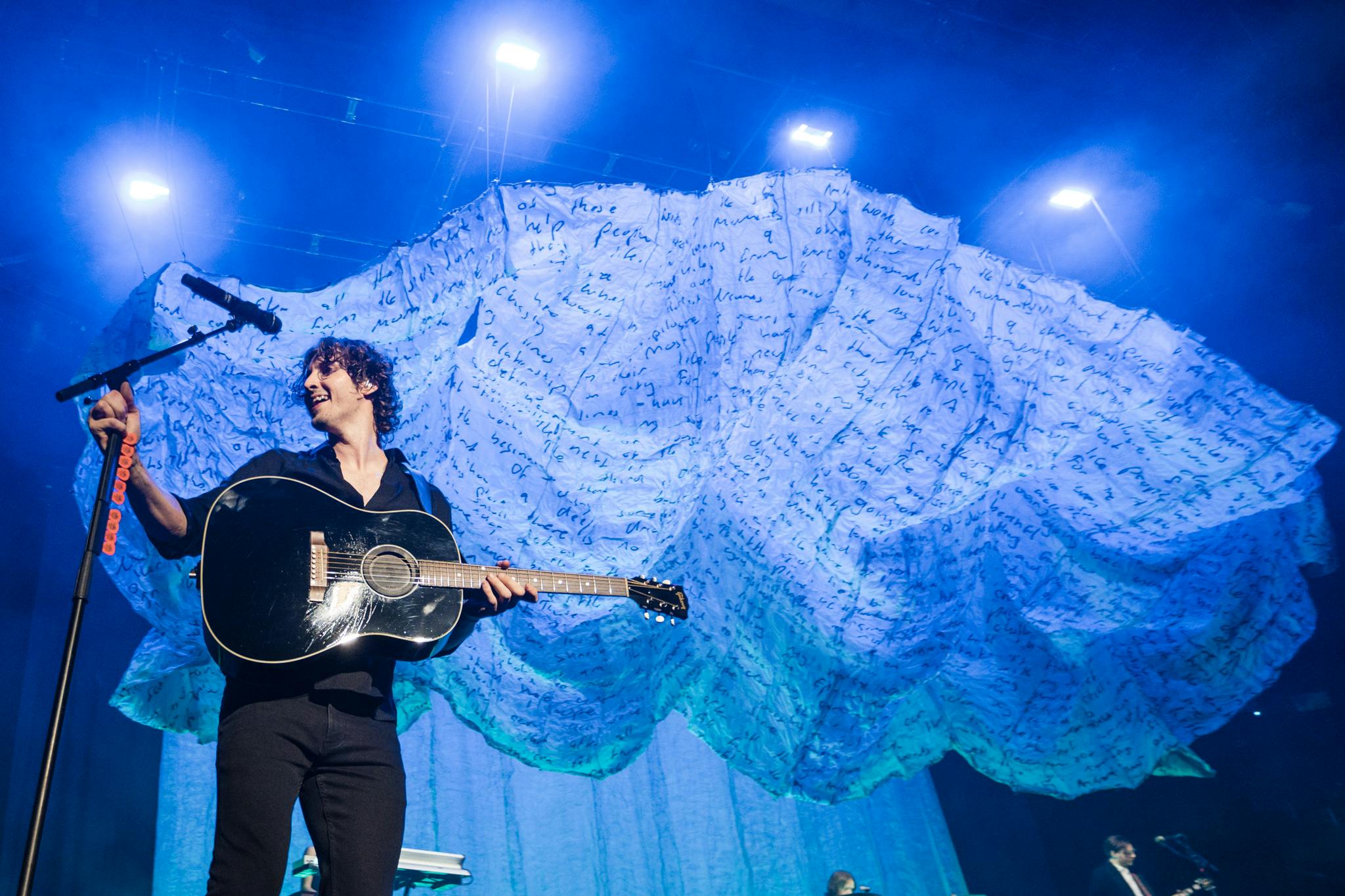 Throughout the concert, the paper mountain subtly transformed under different lighting schemes, aligning with the mood of each song. This innovative stage element not only added a unique visual dimension to the tour but also deepened the audience's connection to the music, encapsulating the themes of reflection and emotional vulnerability that are central to Dean Lewis's work.