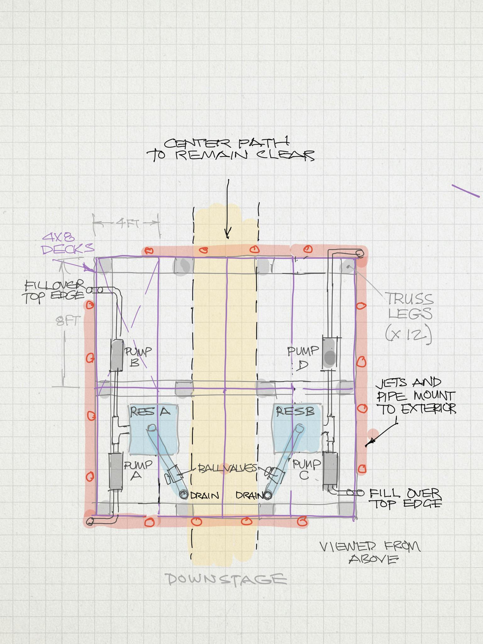 Fragment 9 brought incredible, virtual, scenic extensions to the performance with dynamic lighting scenes that could be altered via the lighting console. The intense LED video screens were softened considerable by the pink fabric, creating an intense world of color and light.