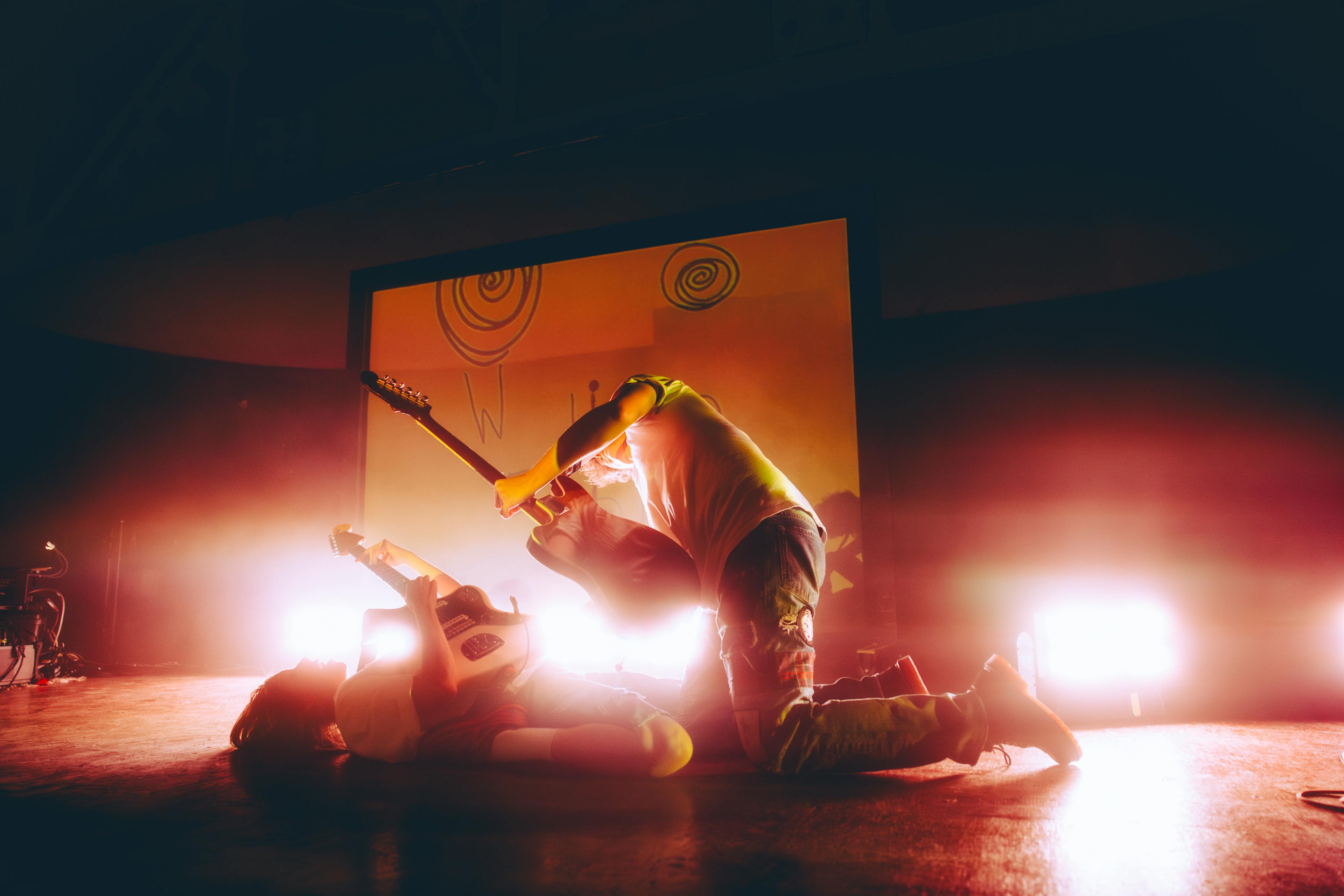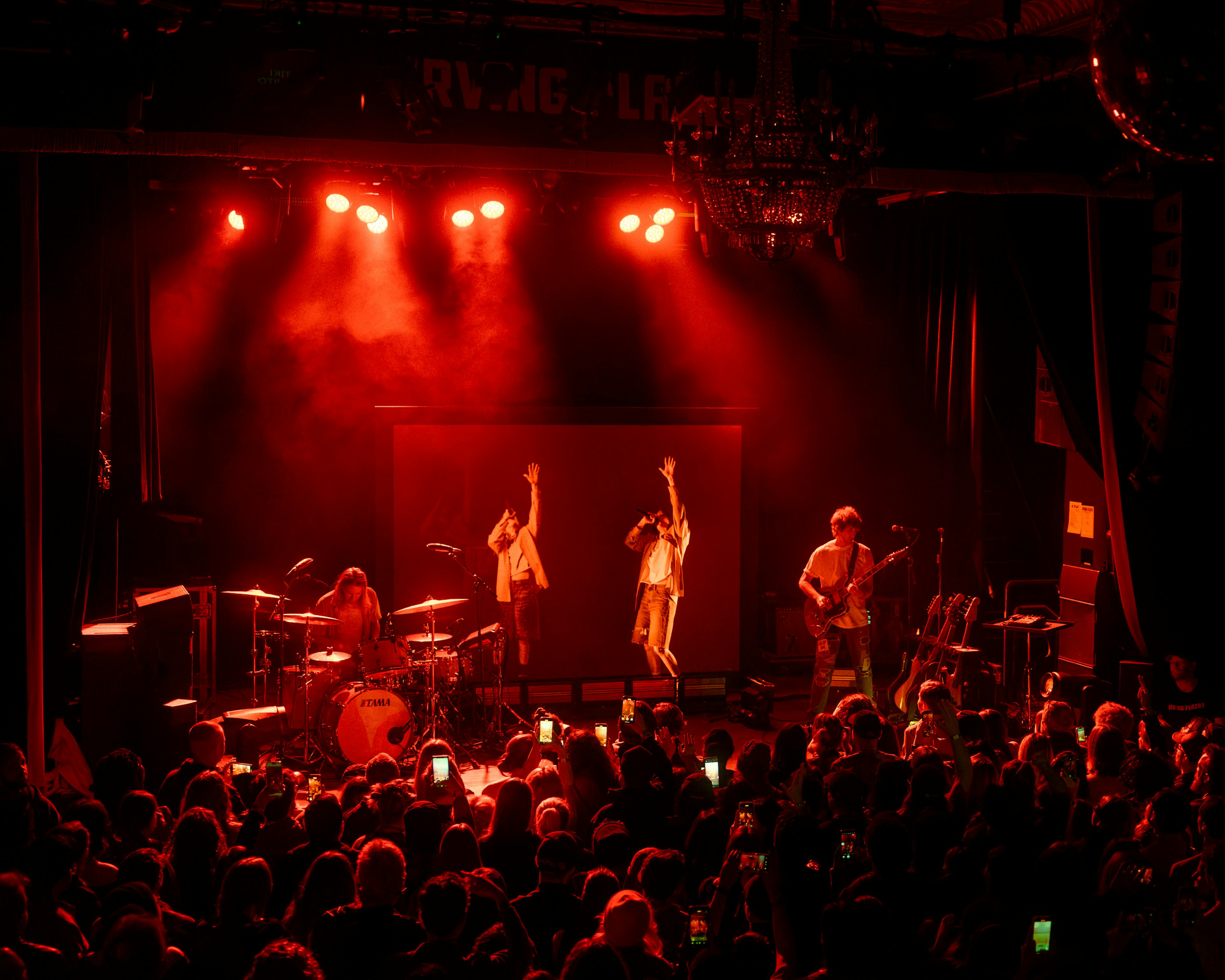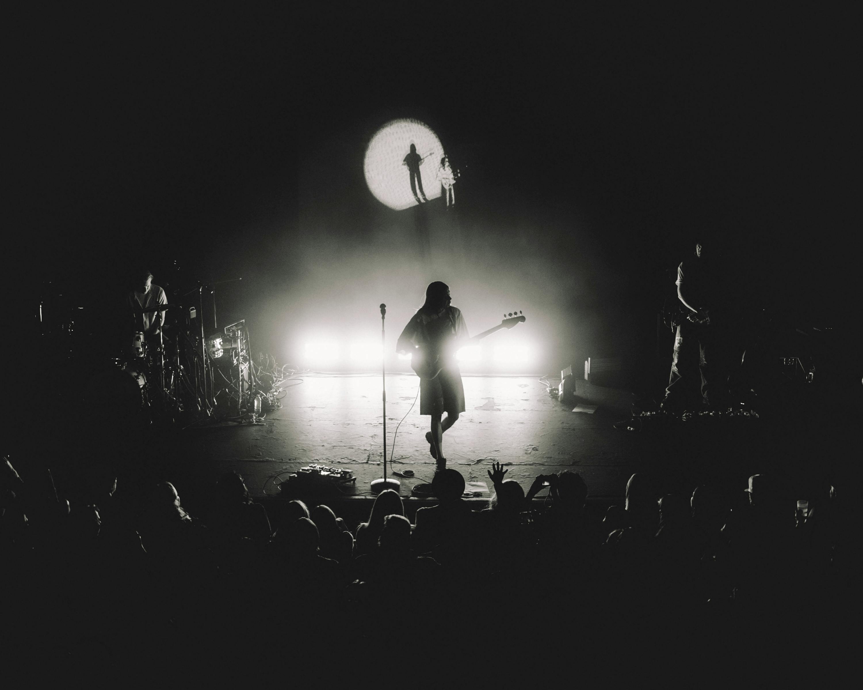 The first act establishes normalcy. A miniature K.Flay in a far off distance strolls towards the audience getting larger and larger with a soft open to “Bar Soap” until she walks off screen into real life. Act 1 centers around the band, bold color-blocked lighting, and floor-to-ceiling projection that grounds the audience in focus.