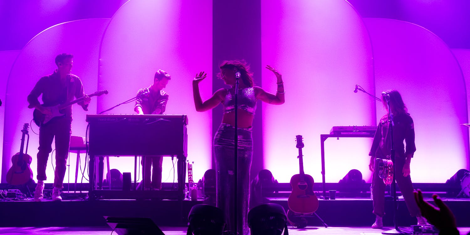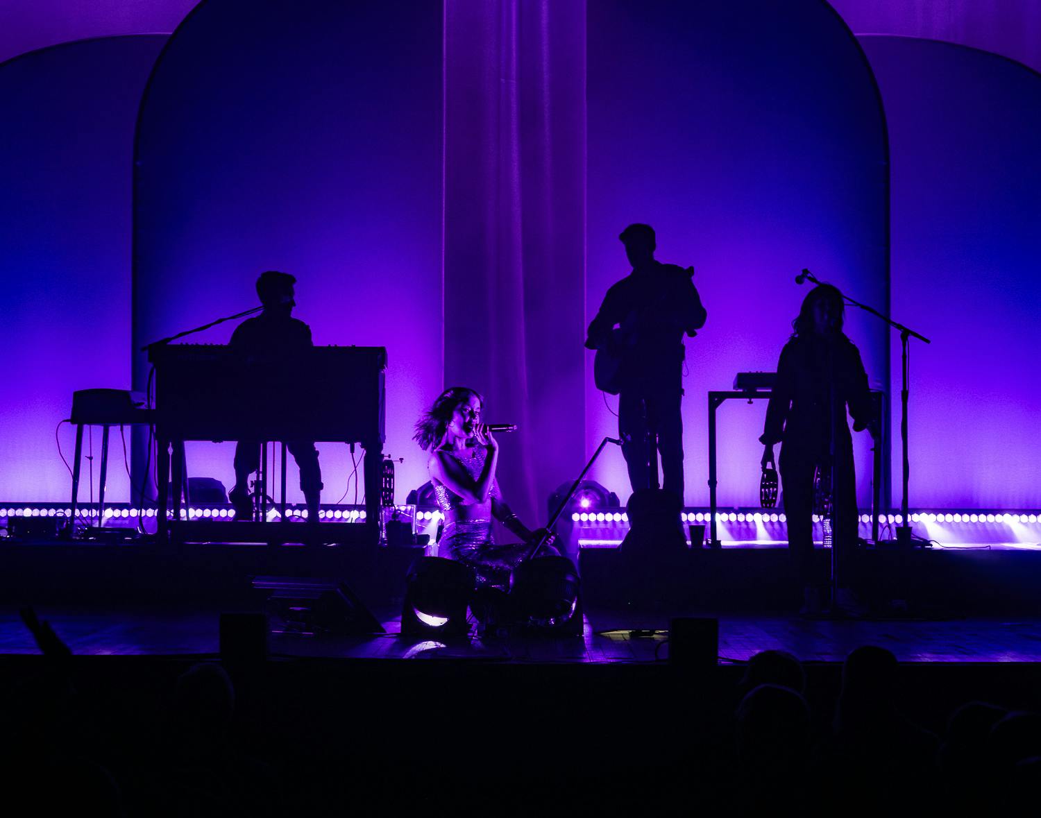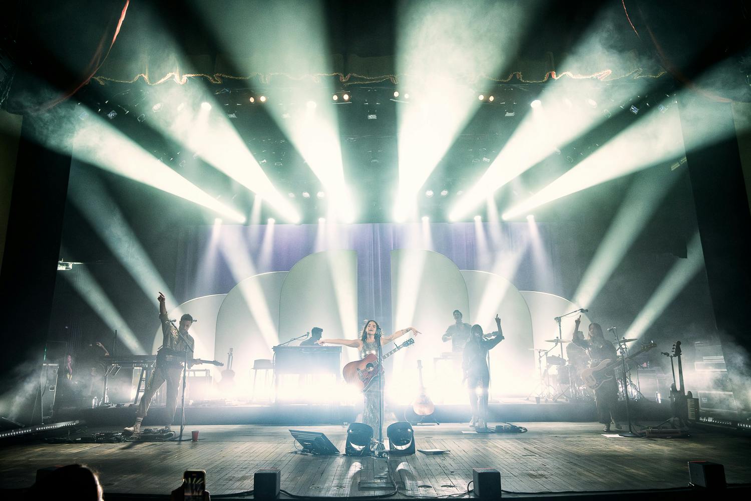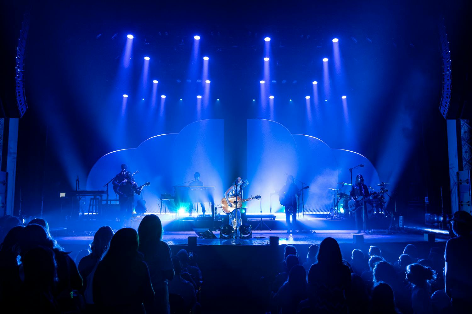 Together, the team created a series of looks from which the artist could choose. The result was a simplistic backdrop that could change colors throughout the night, creating a dynamic setting for Maren's music.